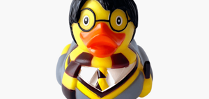 A curious spell has transformed Harry, the world's most famous wizard, into an adorable rubber duck! With his round glasses and his trusty wand always by his side, this rubber duck embodies courage, friendship, and a sense of adventure, carrying with it the very essence of a magical and renowned young wizard.